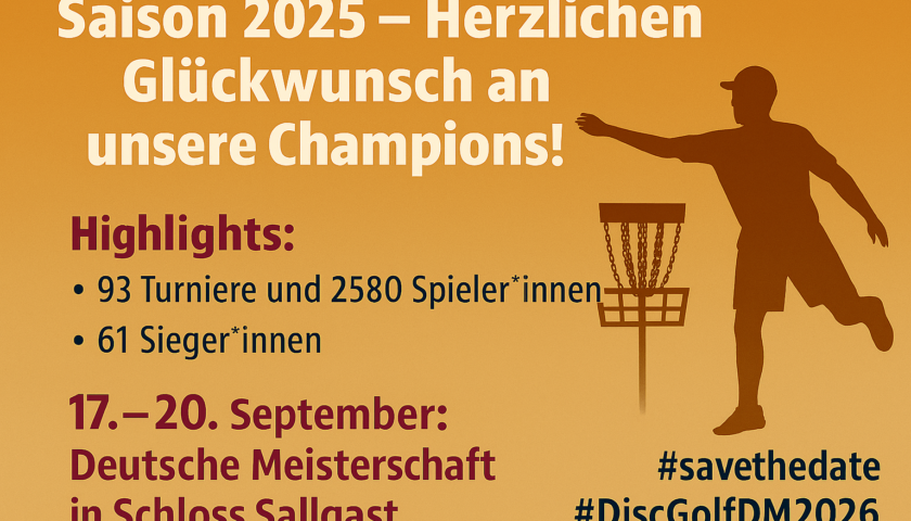 Die Saison 2025 ist Geschichte – und sie hat Maßstäbe gesetzt: 93 Turniere, 2580 Spieler*innen, 51 mehr als im Vorjahr! Mehr Action, mehr Emotionen, mehr Discgolf.